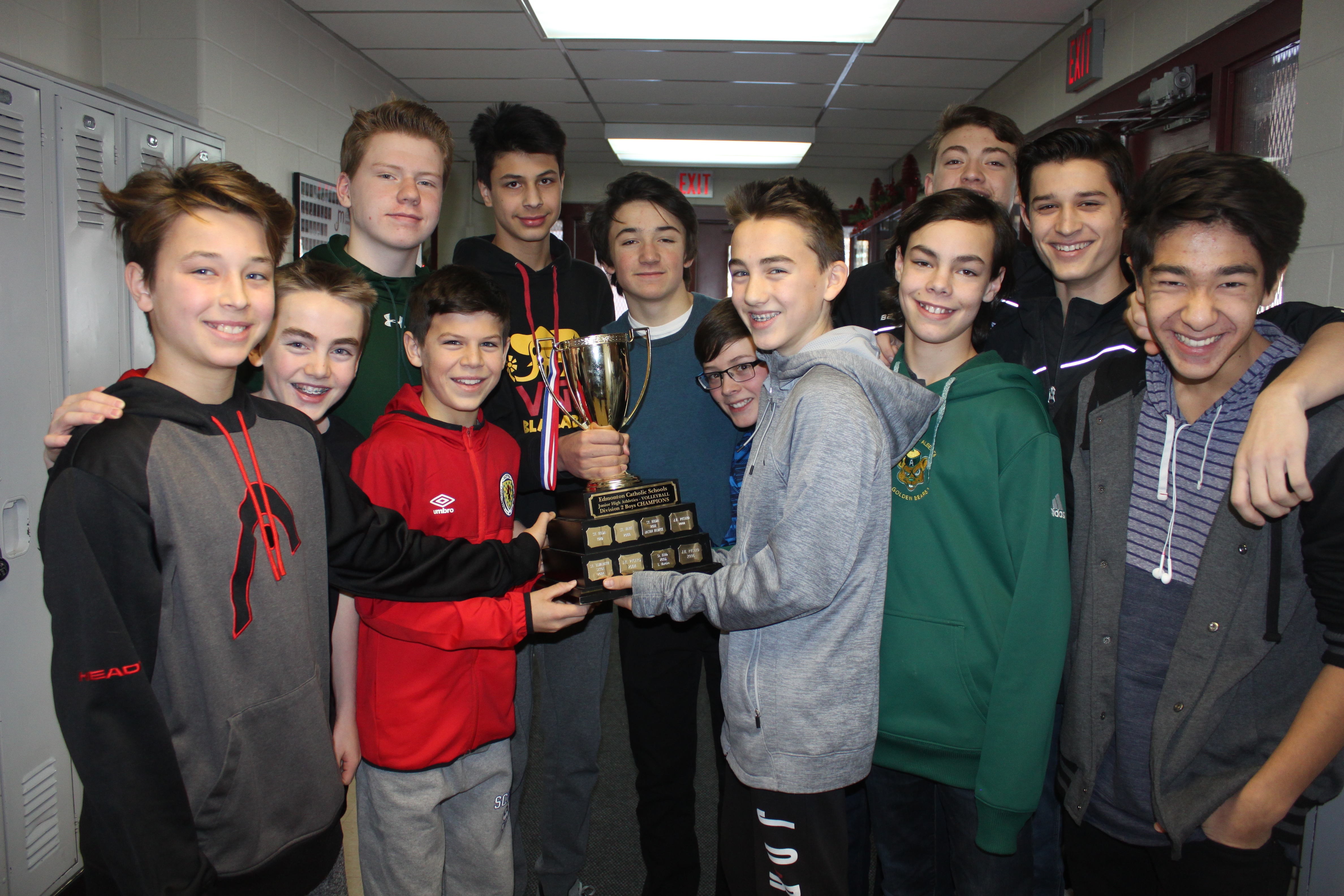 Félicitations à notre équipe masculine de volleyball pour avoir remporté la coupe des champions! Vous avez tenu en haleine vos nombreux partisans dans les estrades! Enfin une bannière en volleyball masculin pour notre école!